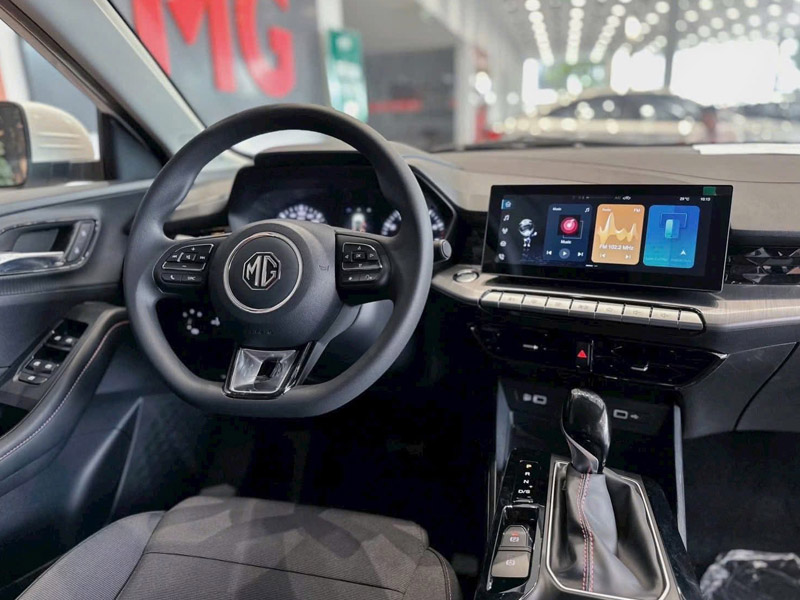 Bước vào khoang nội thất, họ đơn giản nhận thấy nhiều điểm quen thuộc trên các mẫu xe của MG đang bán tại VN. Cụ thêt vô-lăng dạng 3 chấu vát đáy phẳng như các dòng xe thể thao, tích hợp đầy đủ các nút chức năng điều khiển nhanh.