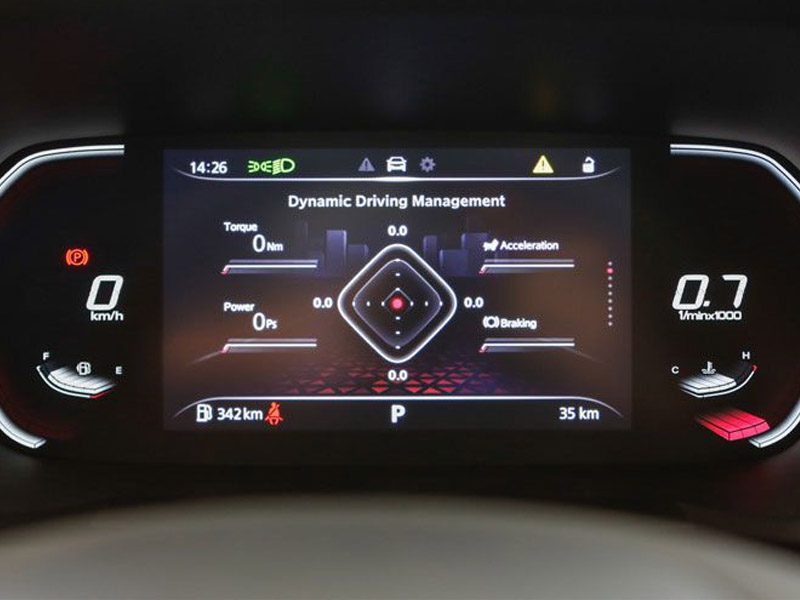 Đối diện ghế ngồi lái là vo-lang 3 chấu bọc da có đáy vát phẳng tạo cảm giác cầm nắm thể thao. Ngay phía sau là bảng đồng hồ kỹ thuật số hoàn toàn có thể thay đổi nhiều cấu hình tạo hiệu ứng thị giác mạnh mẽ.